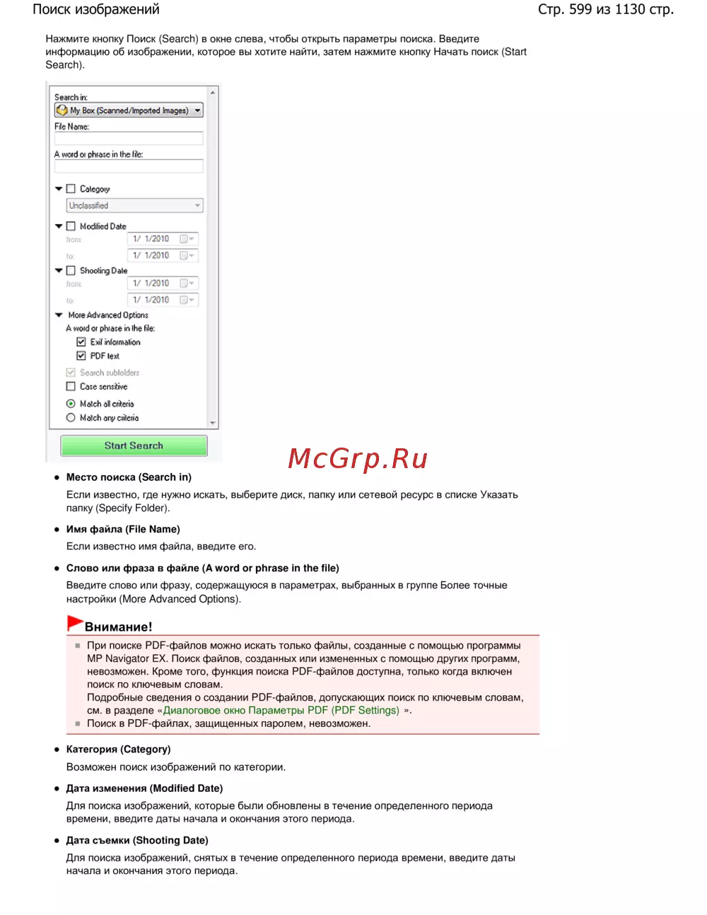 Canon Pixma MG6140 — поиск изображений: инструкция с параметрами и поиском PDF [599/1130]