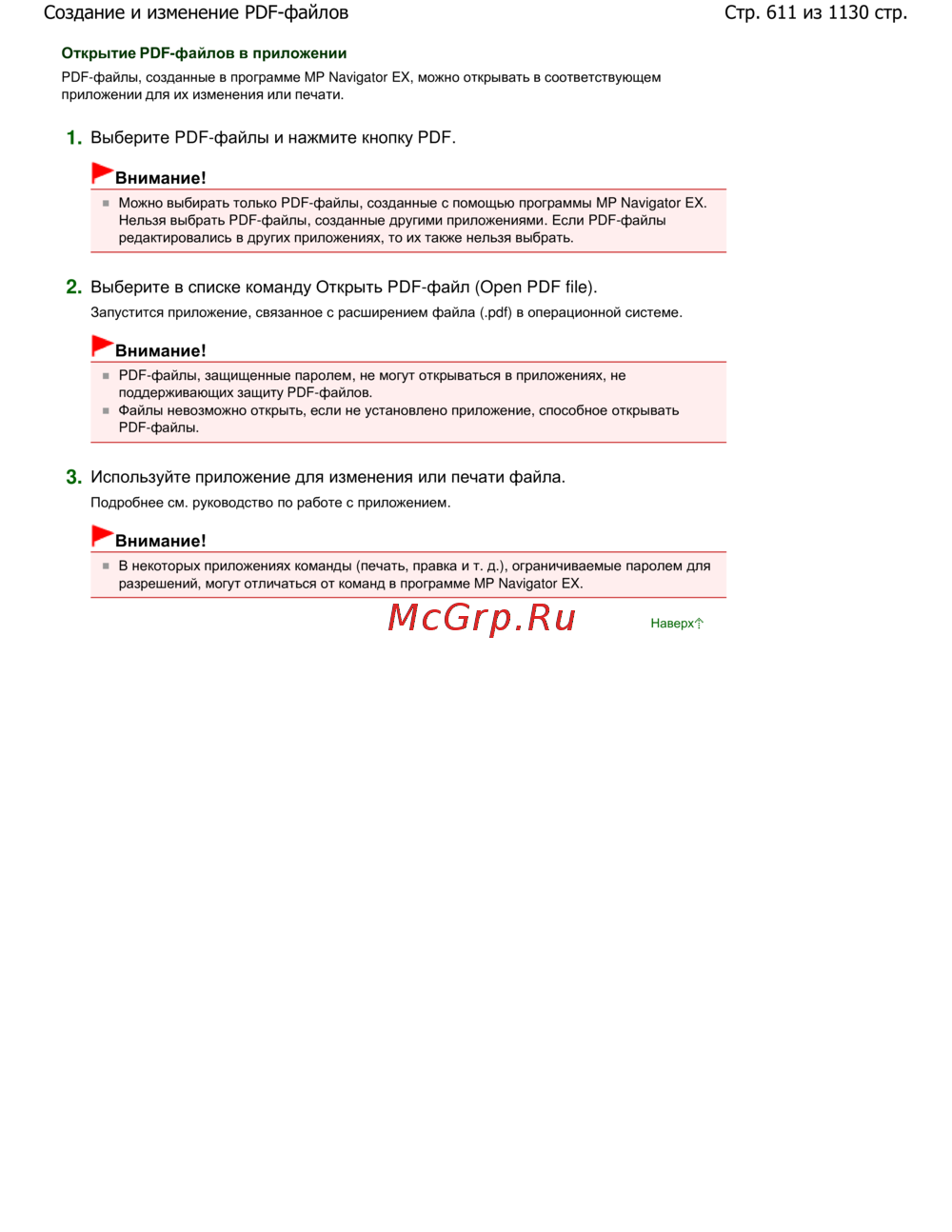 PDF-файлы, созданные в программе MP Navigator EX, можно открывать в соответствующем