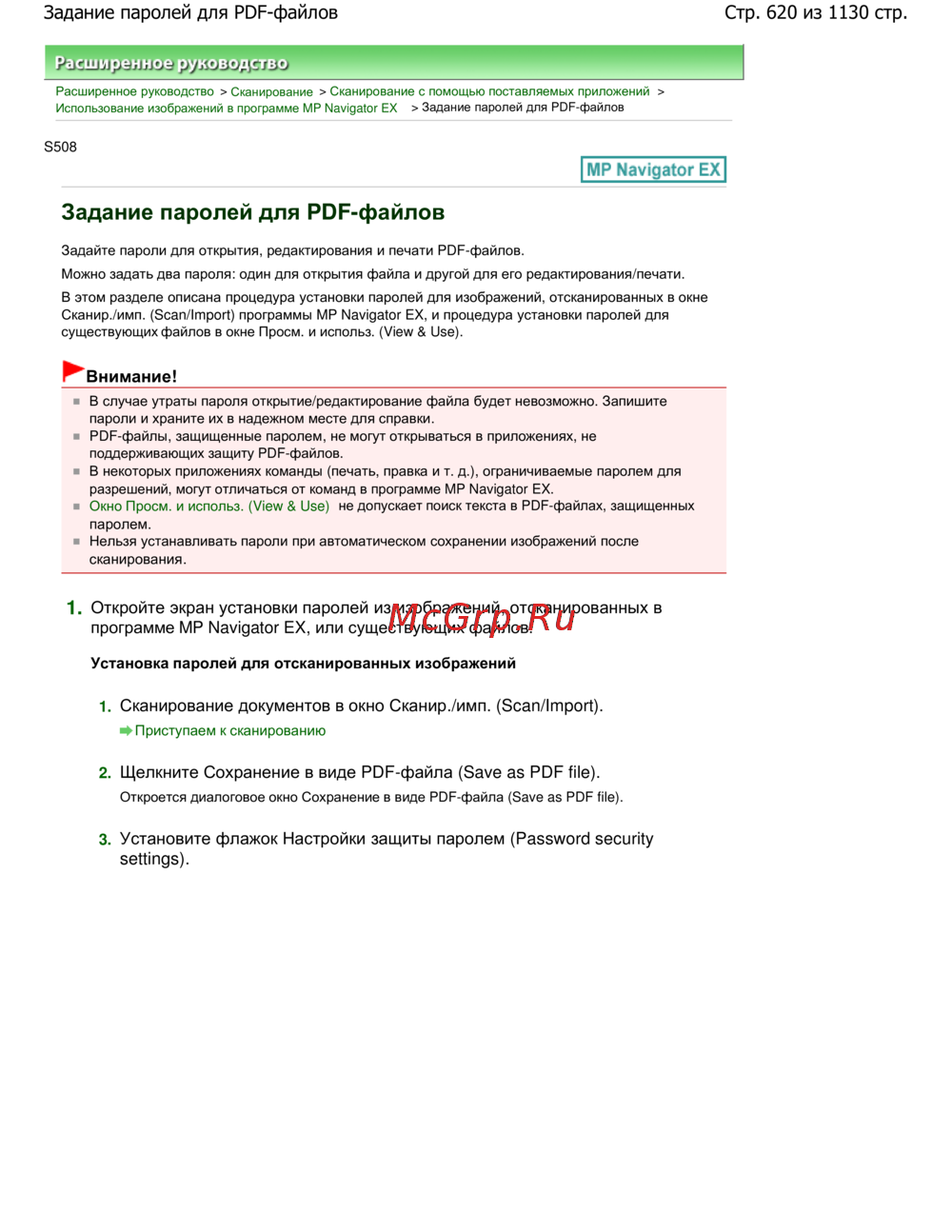 Стр. 620 из 1130 стр.Задание паролей для PDF-файлов