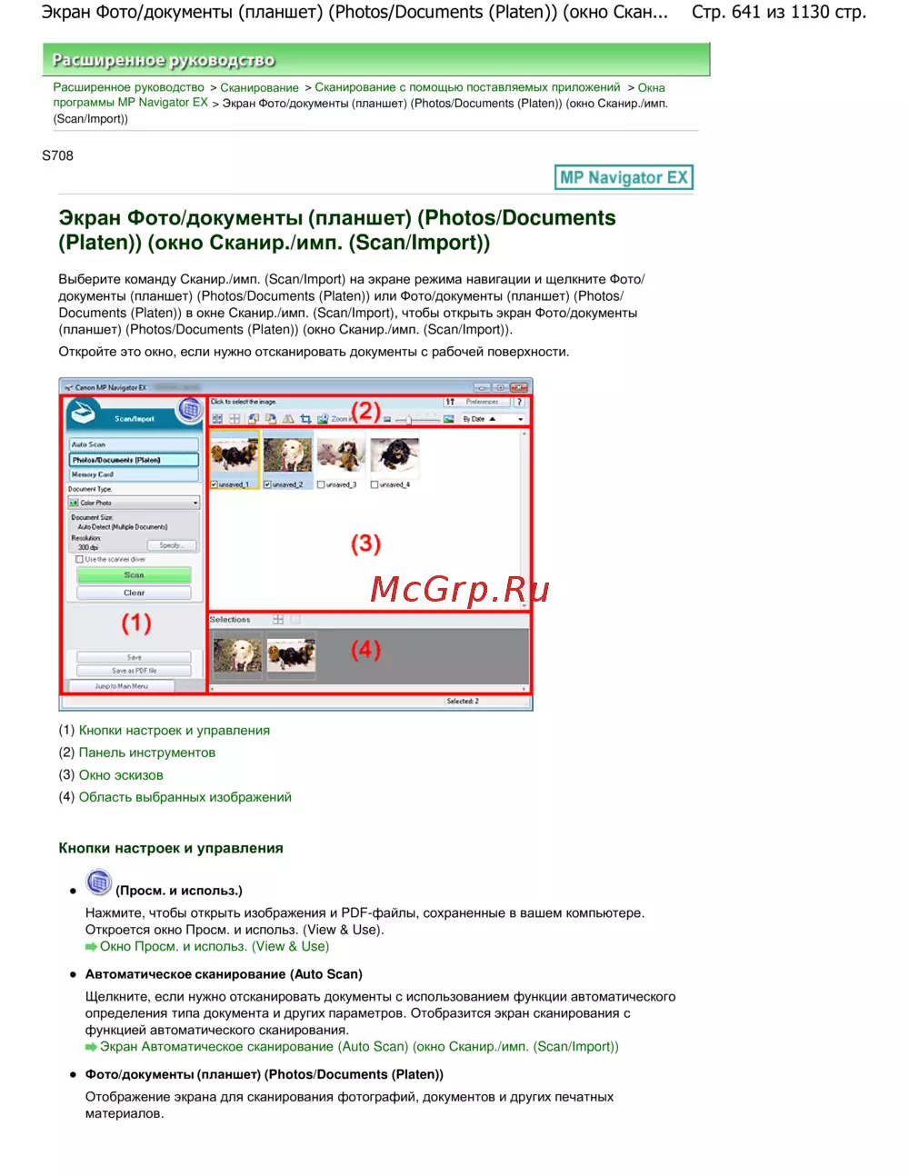 Стр. 641 из 1130 стр.Экран Фото/документы (планшет) (Photos/Documents (Platen)) (окно Скан...