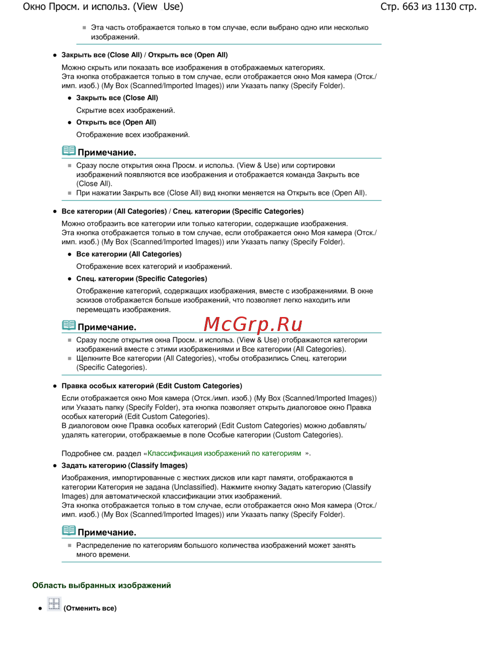 Canon Pixma MG6140 — управление изображениями: открытие и закрытие категорий [663/1130]