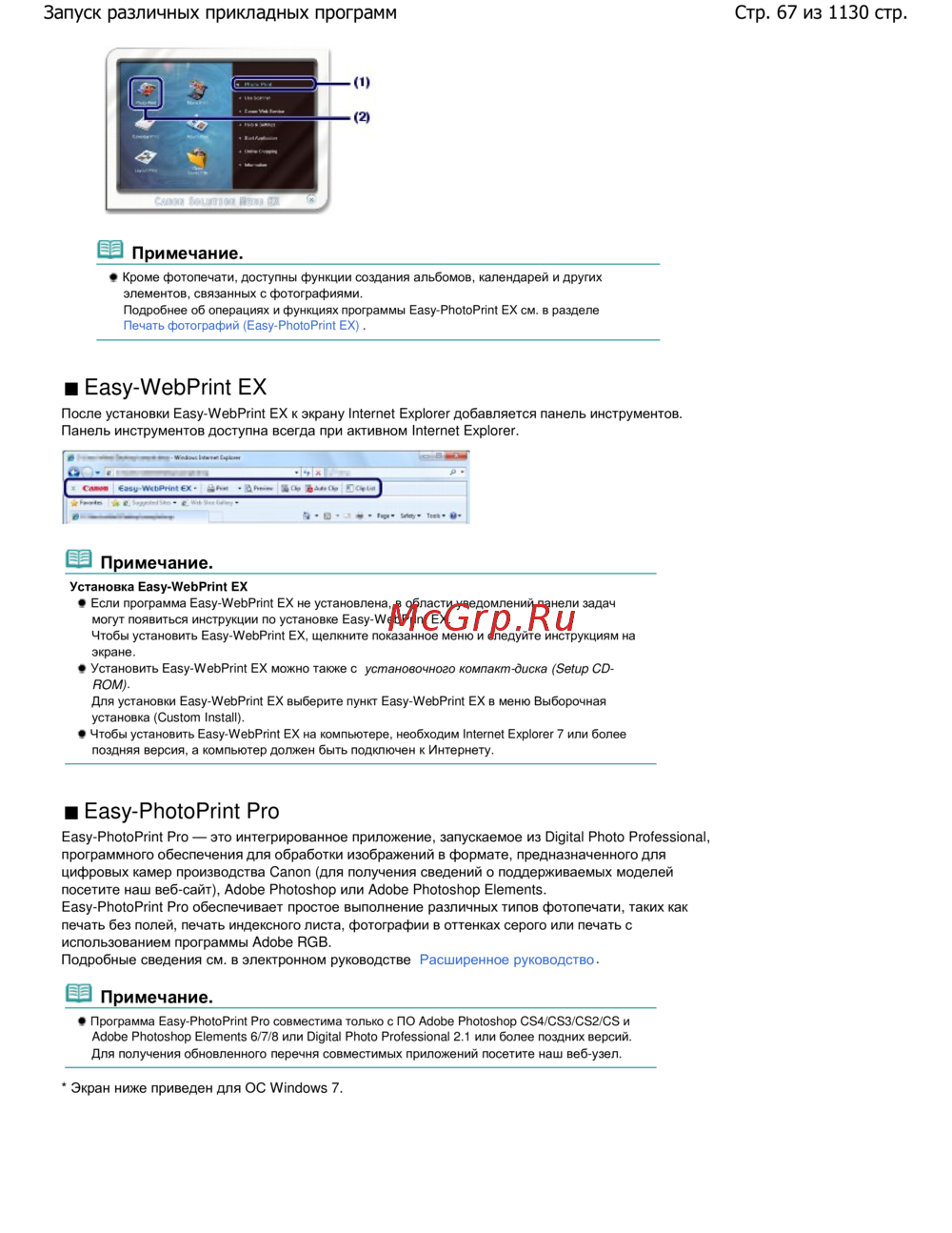 Программы для печати фотографий, создание альбомов и календарей. Установка через Internet Explorer и совместимость с Adobe Photoshop и Digital Photo Professional. Подробнее в руководствах.
