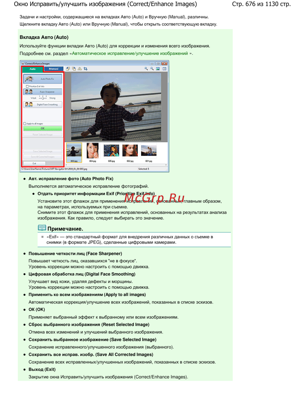Стр. 676 из 1130 стр.Окно Исправить/улучшить изображения (Correct/Enhance Images)