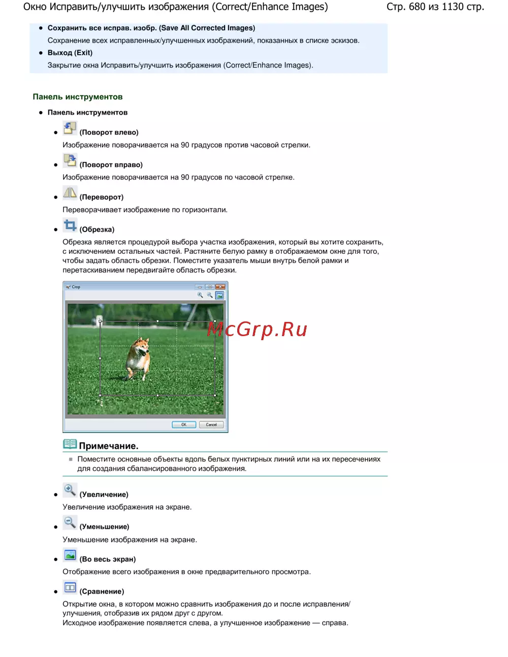 Стр. 680 из 1130 стр.Окно Исправить/улучшить изображения (Correct/Enhance Images)