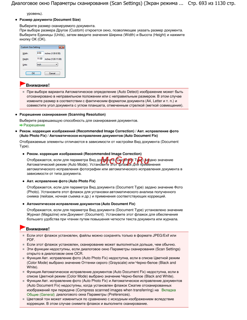 Стр. 693 из 1130 стр.Диалоговое окно Параметры сканирования (Scan Settings) (Экран режима ...