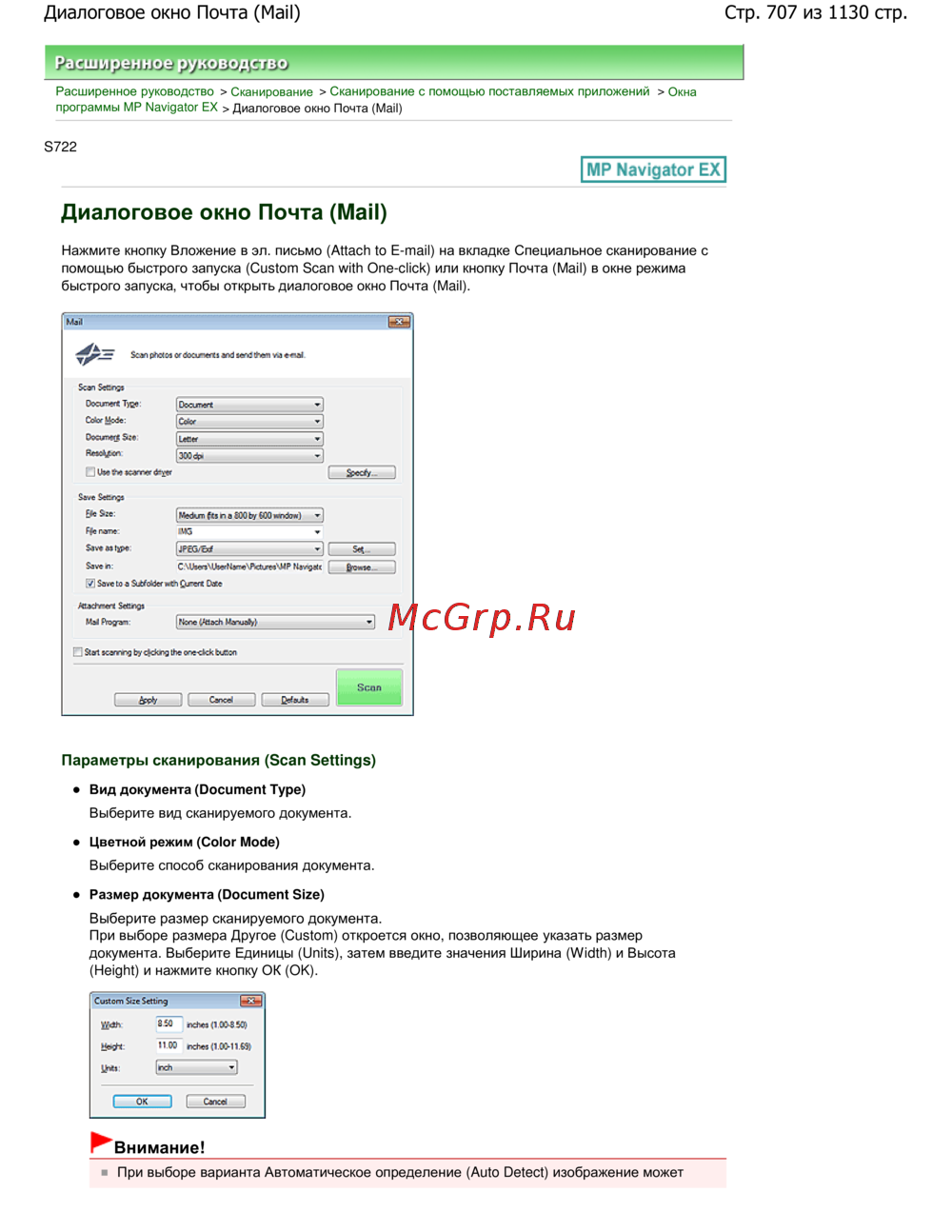 Canon Pixma MG6140 — настройка сканирования в MP Navigator EX: Параметры и окна [707/1130]