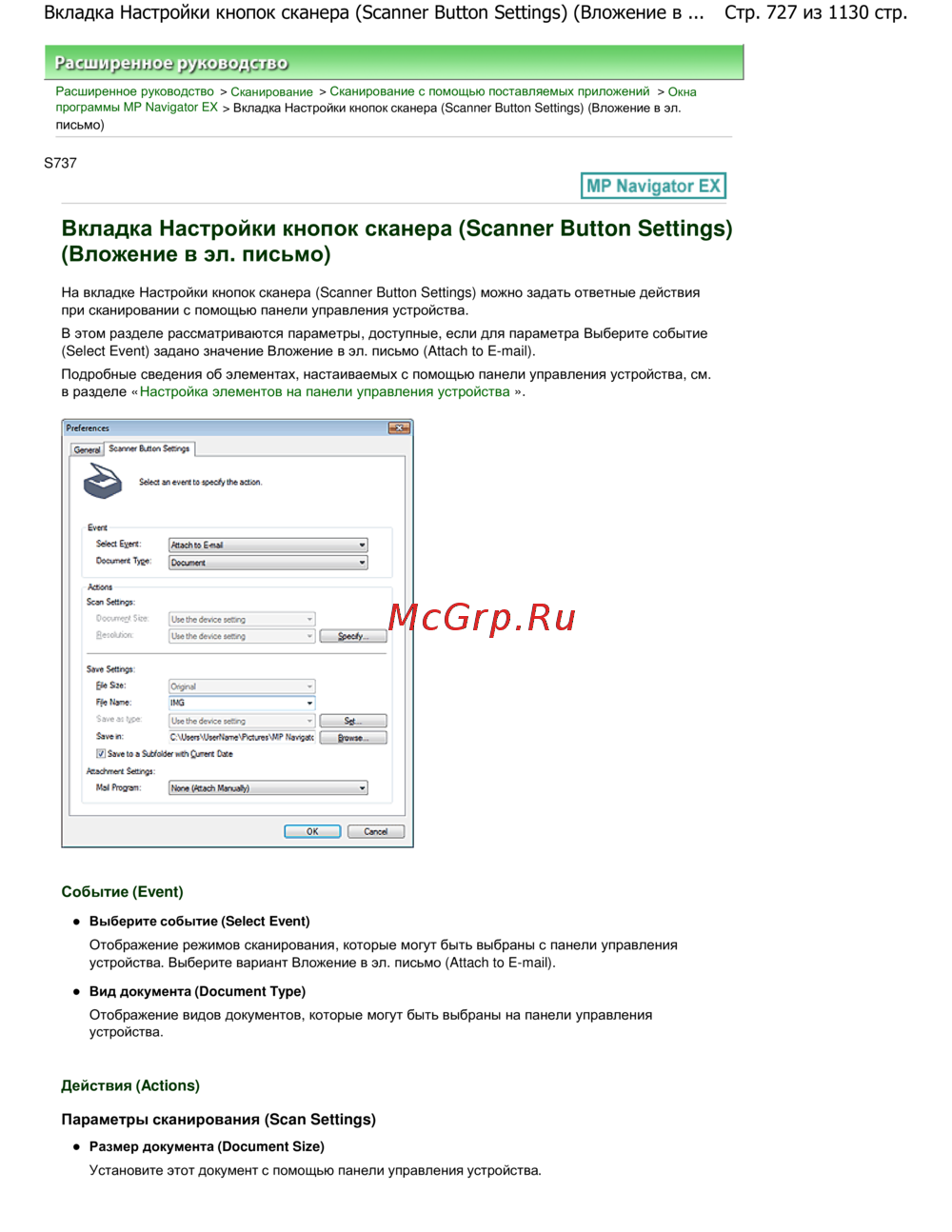 Canon Pixma MG6140 — настройка кнопок сканера для вложения в письмо в MP Navigator EX [727/1130]