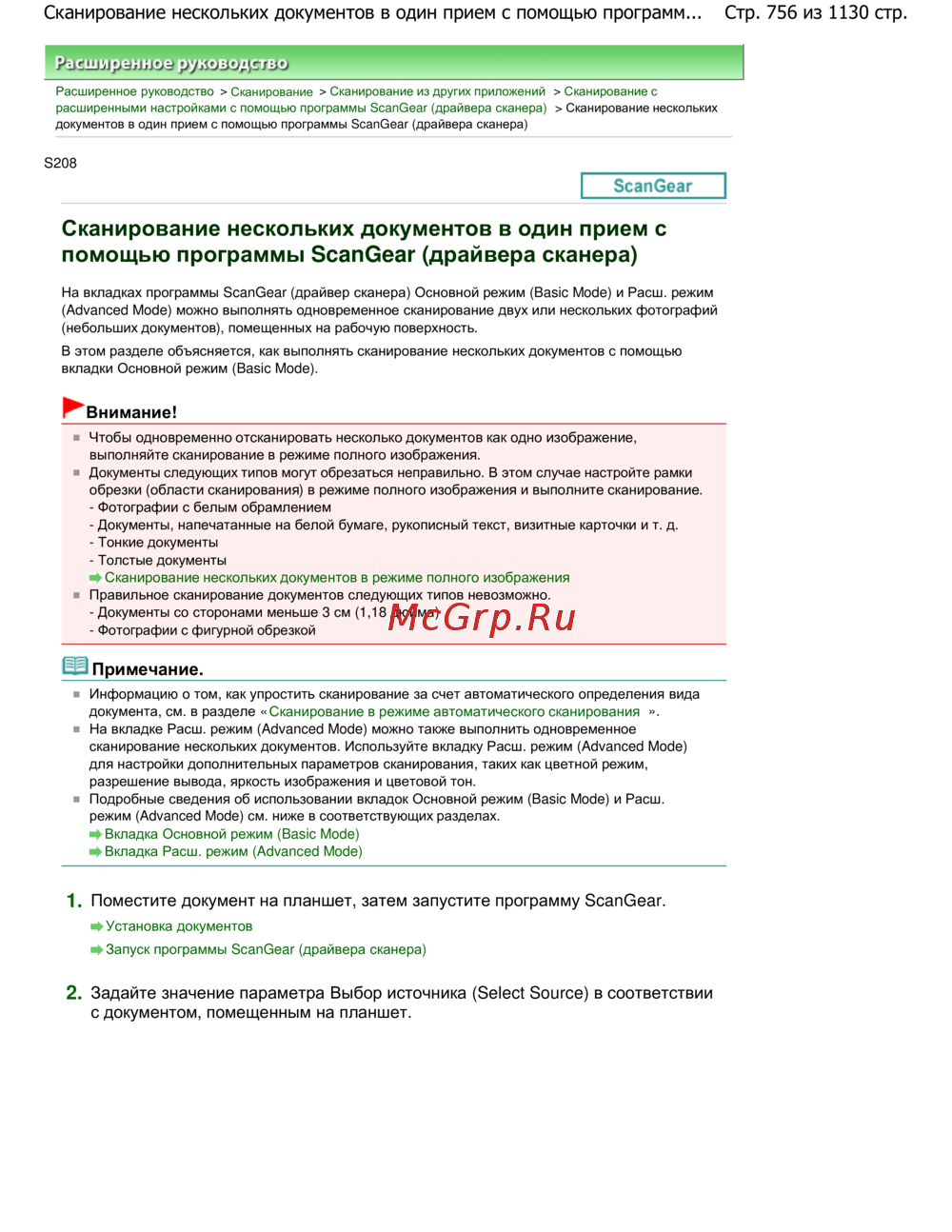Стр. 756 из 1130 стр.Сканирование нескольких документов в один прием с помощью программ...