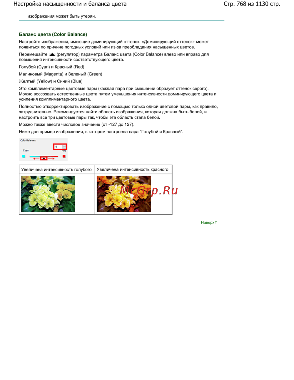 Стр. 768 из 1130 стр.Настройка насыщенности и баланса цвета