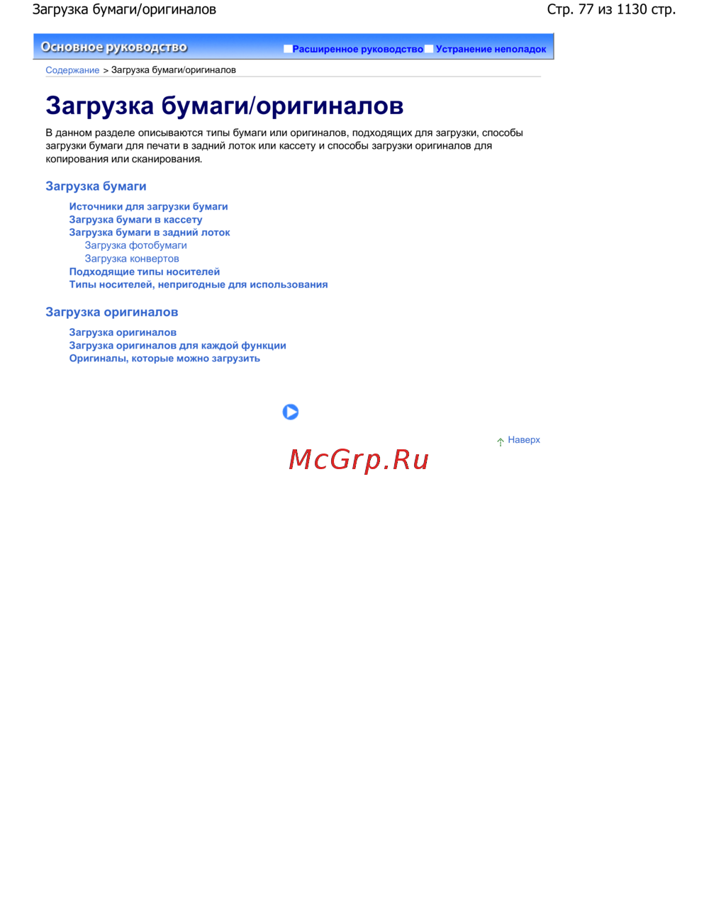 Стр. 77 из 1130 стр.Загрузка бумаги/оригиналов