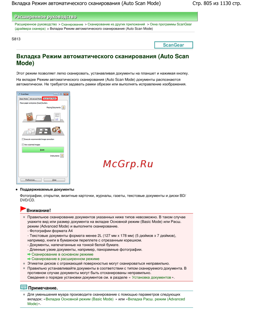 Стр. 805 из 1130 стр.Вкладка Режим автоматического сканирования (Auto Scan Mode)