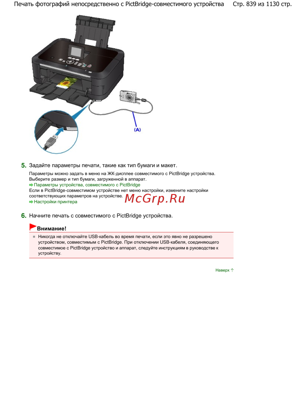 Стр. 839 из 1130 стр.Печать фотографий непосредственно с PictBridge-совместимого устройства