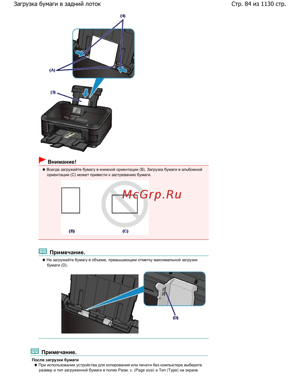 Стр. 84 из 1130 стр.Загрузка бумаги в задний лоток