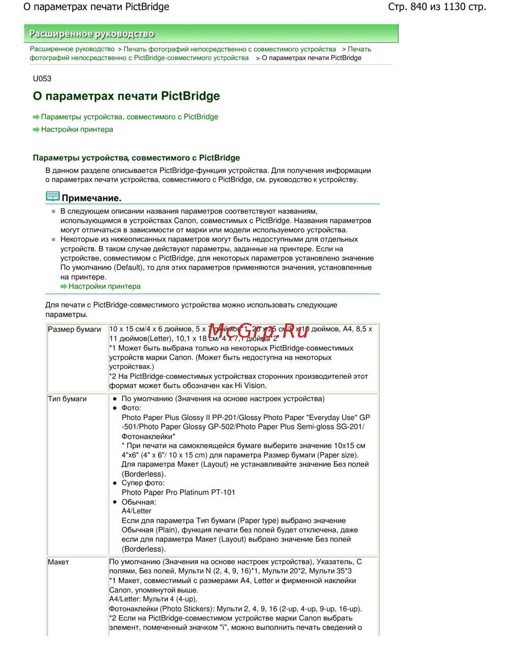 Стр. 840 из 1130 стр.О параметрах печати PictBridge