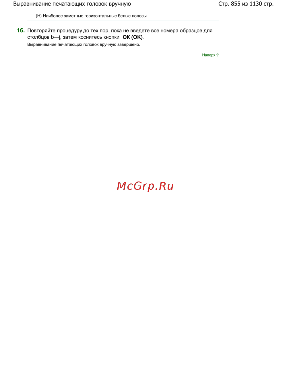 Стр. 855 из 1130 стр.Выравнивание печатающих головок вручную
