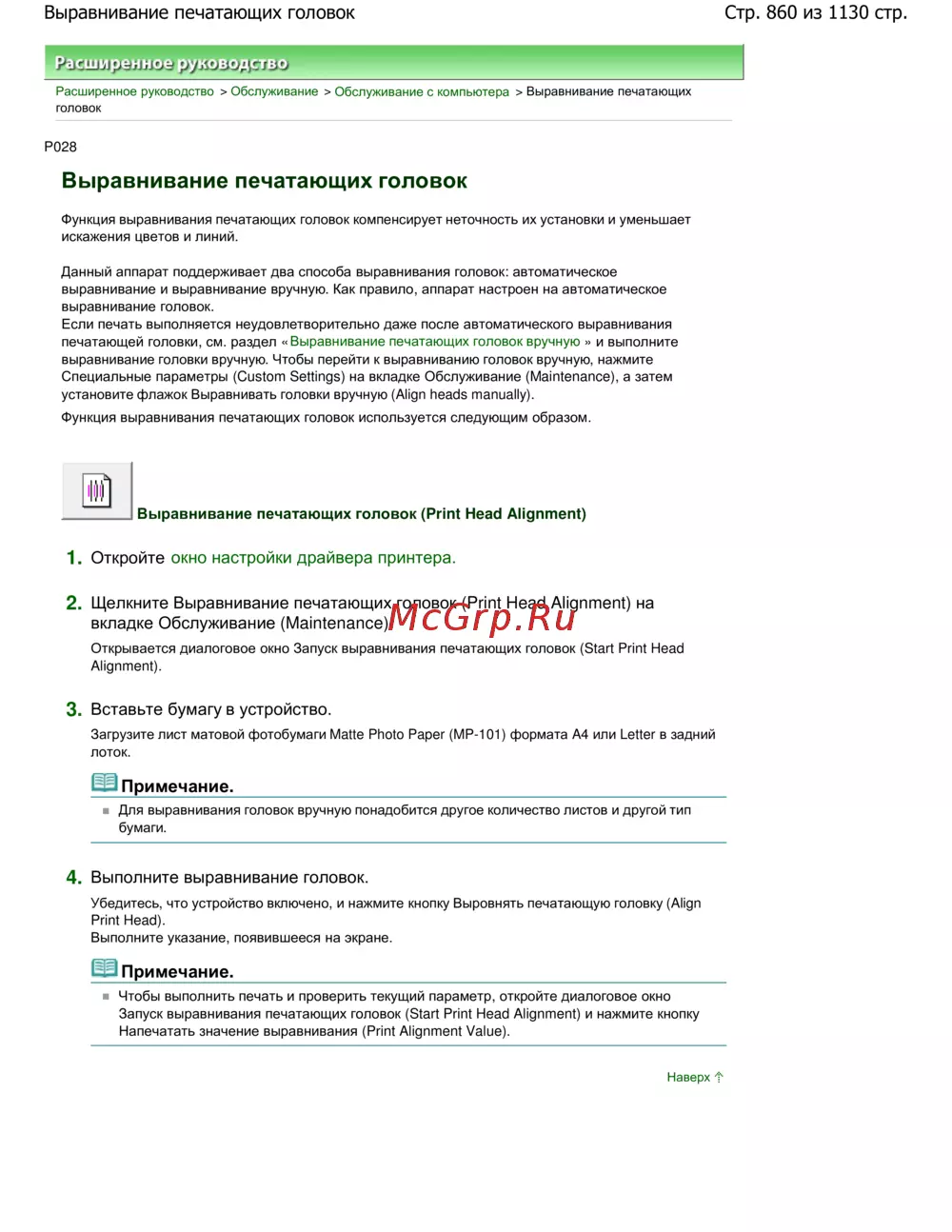 Canon Pixma MG6140 — полное руководство по выравниванию печатающих головок [860/1130]