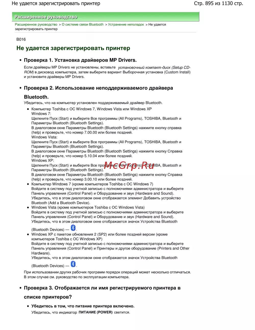 Проблема с регистрацией принтера Bluetooth? Проверьте драйверы MP Drivers, версию Bluetooth и состояние принтера. Пошаговое руководство для Windows 7, Vista, XP.
