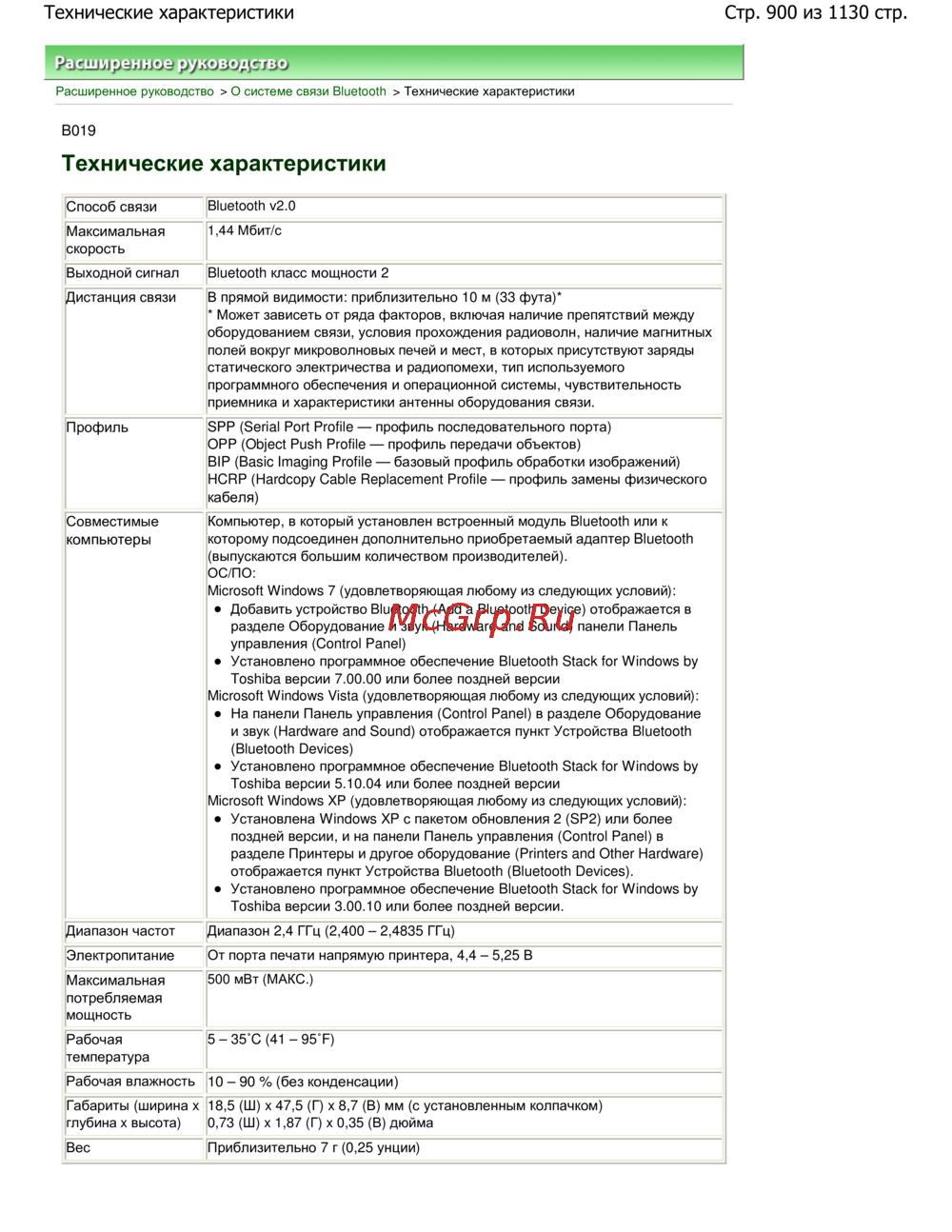 Canon Pixma MG6140 — технические характеристики системы связи Bluetooth v2.0 [900/1130]