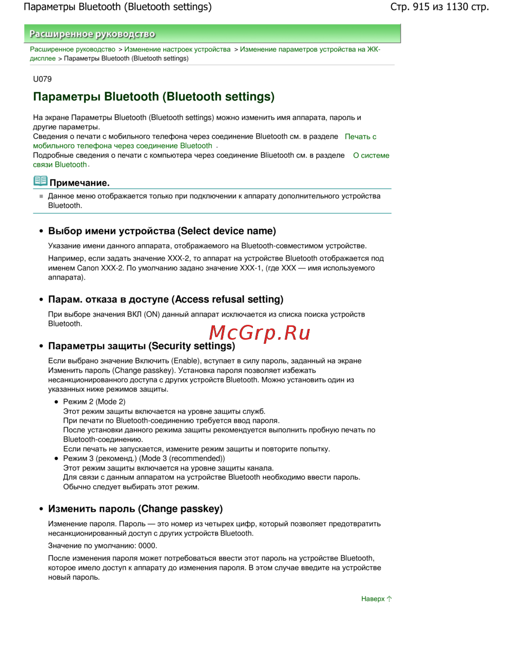 Canon Pixma MG6140 — полное руководство по настройкам Bluetooth на устройстве [915/1130]