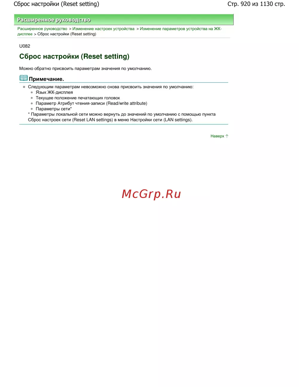 Стр. 920 из 1130 стр.Сброс настройки (Reset setting)