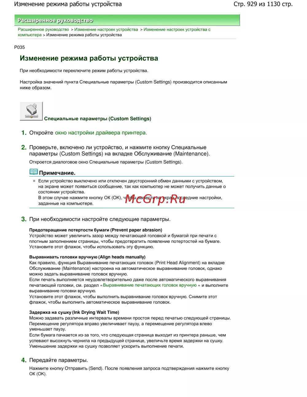 Canon Pixma MG6140 — инструкция по изменению режима работы устройства, настройка параметров [929/1130]