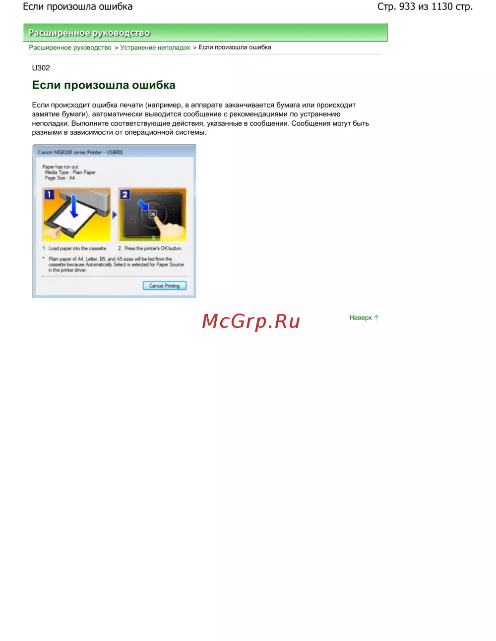 Canon Pixma MG6140 [933/1130] Стр 933 из 1130 стр если произошла ошибка