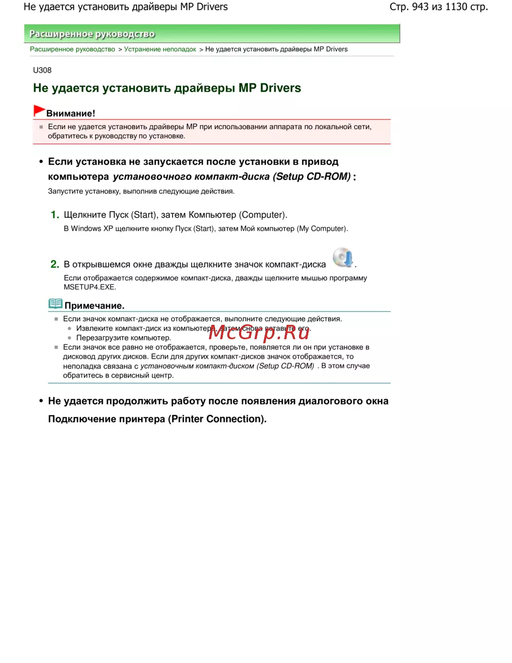 Стр. 943 из 1130 стр.Не удается установить драйверы MP Drivers