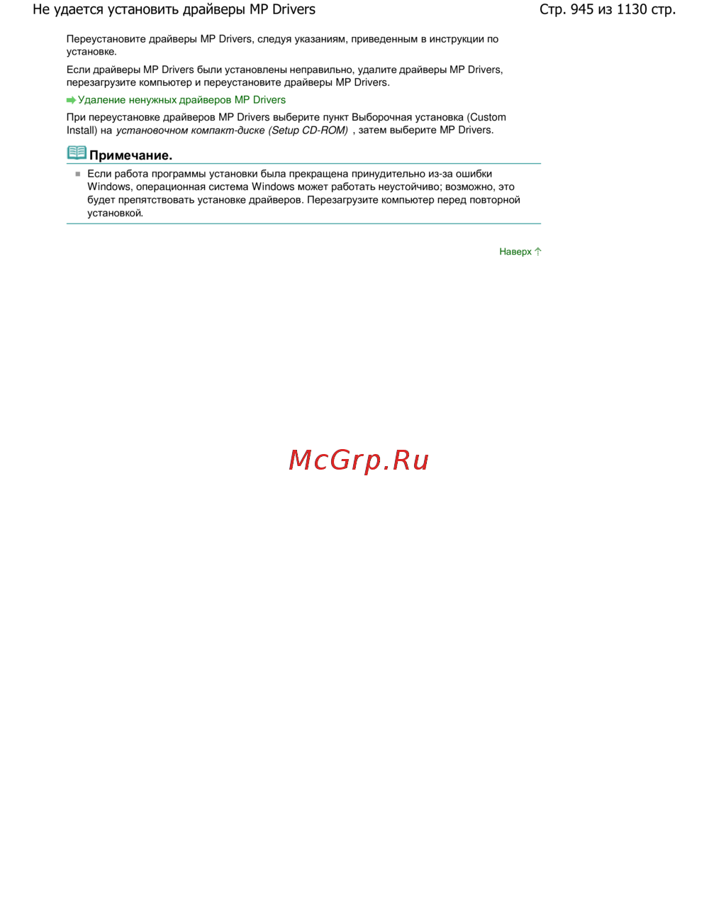 Стр. 945 из 1130 стр.Не удается установить драйверы MP Drivers