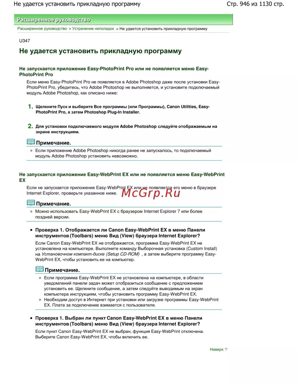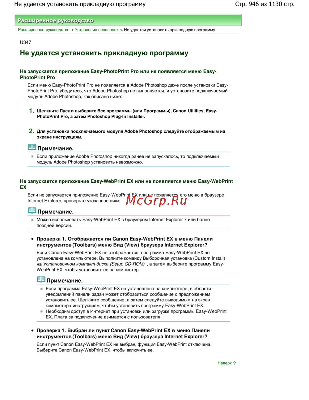 Canon Pixma MG6140 — не удается установить или запустить приложения Canon PhotoPrint или WebPrint [946/1130]