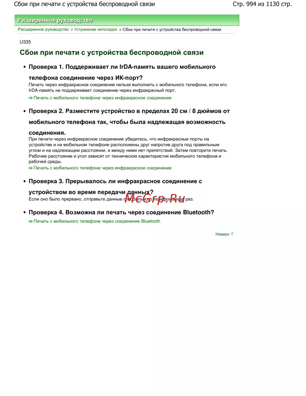 Стр. 994 из 1130 стр.Сбои при печати с устройства беспроводной связи