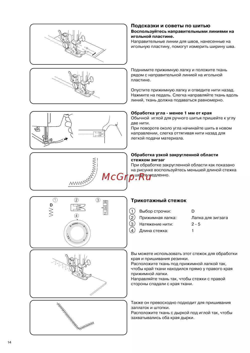 Нажмите на педаль. Слегка направляйте ткань вдоль