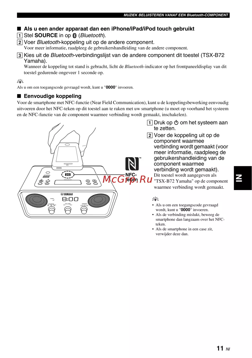 uitvoeren door het NFC-teken op dit toestel aan te raken met uw smartphone (u moet op voorhand het systeem