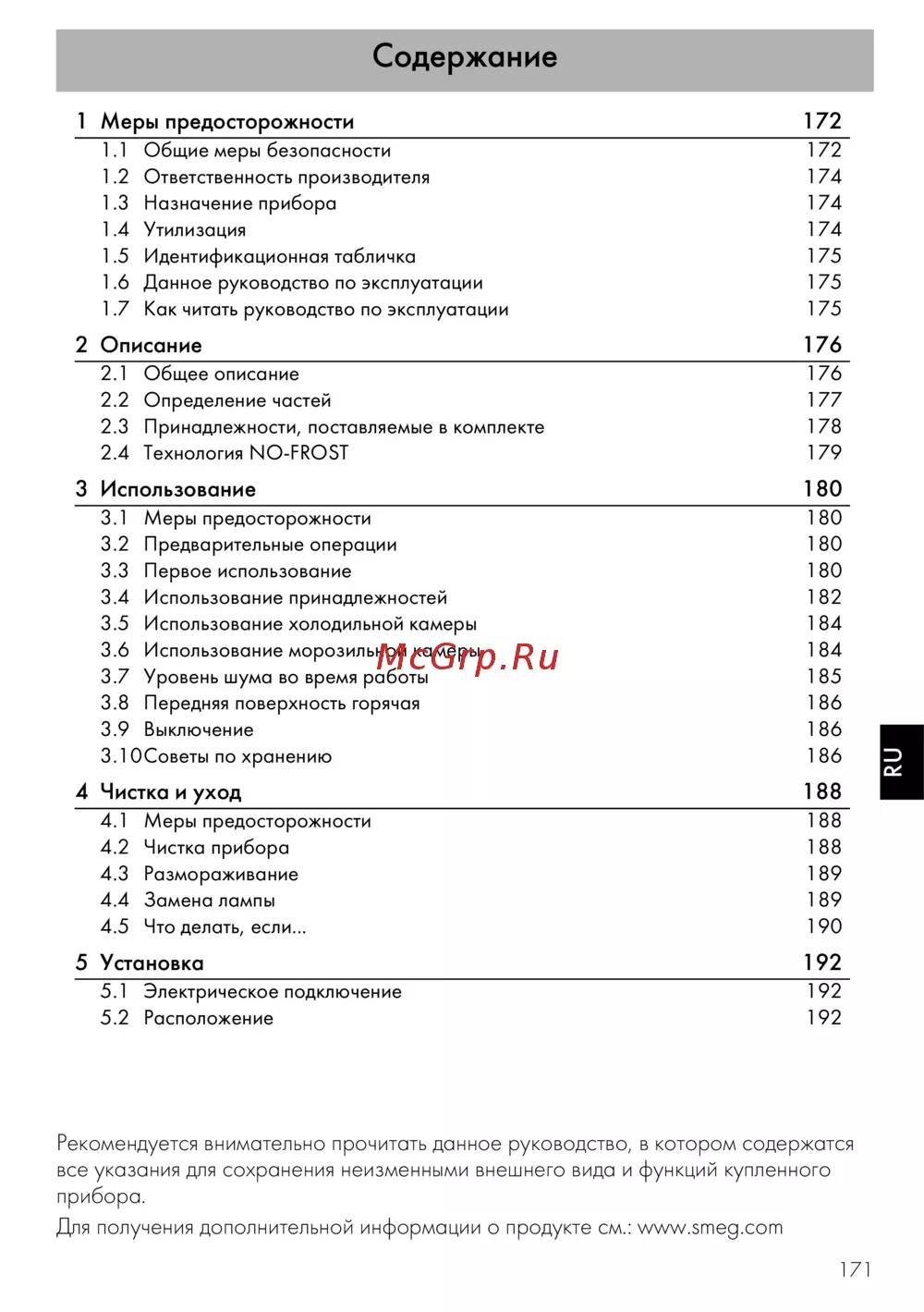 - Рекомендуется внимательно прочитать данное руководство в котором содержатся все указания для сохранения неизменными внешнего вида и функций купленного прибора для получения дополнительной информации о продукте см www smeg com p.1