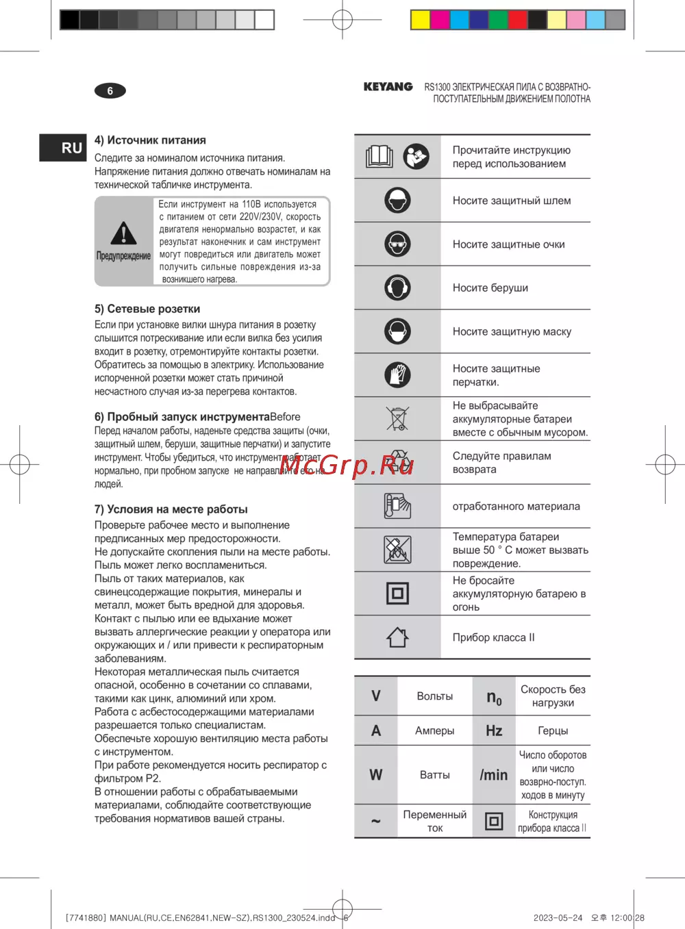 - Общие правила техники безопасности при работе с электроинструменто p.4