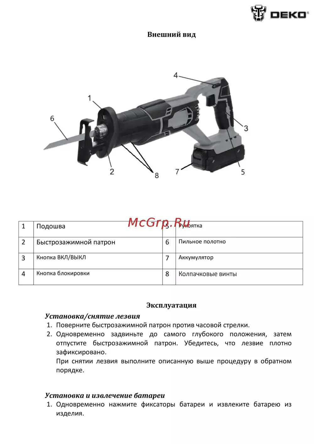 Deko DKRS20-LiИнструкция по эксплуатации -