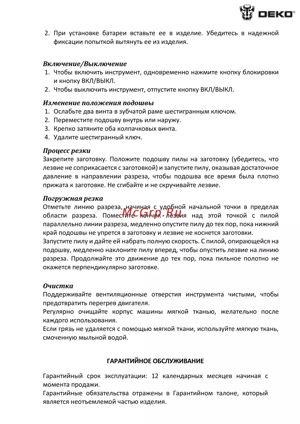 Deko DKRS20-LiИнструкция по эксплуатации -