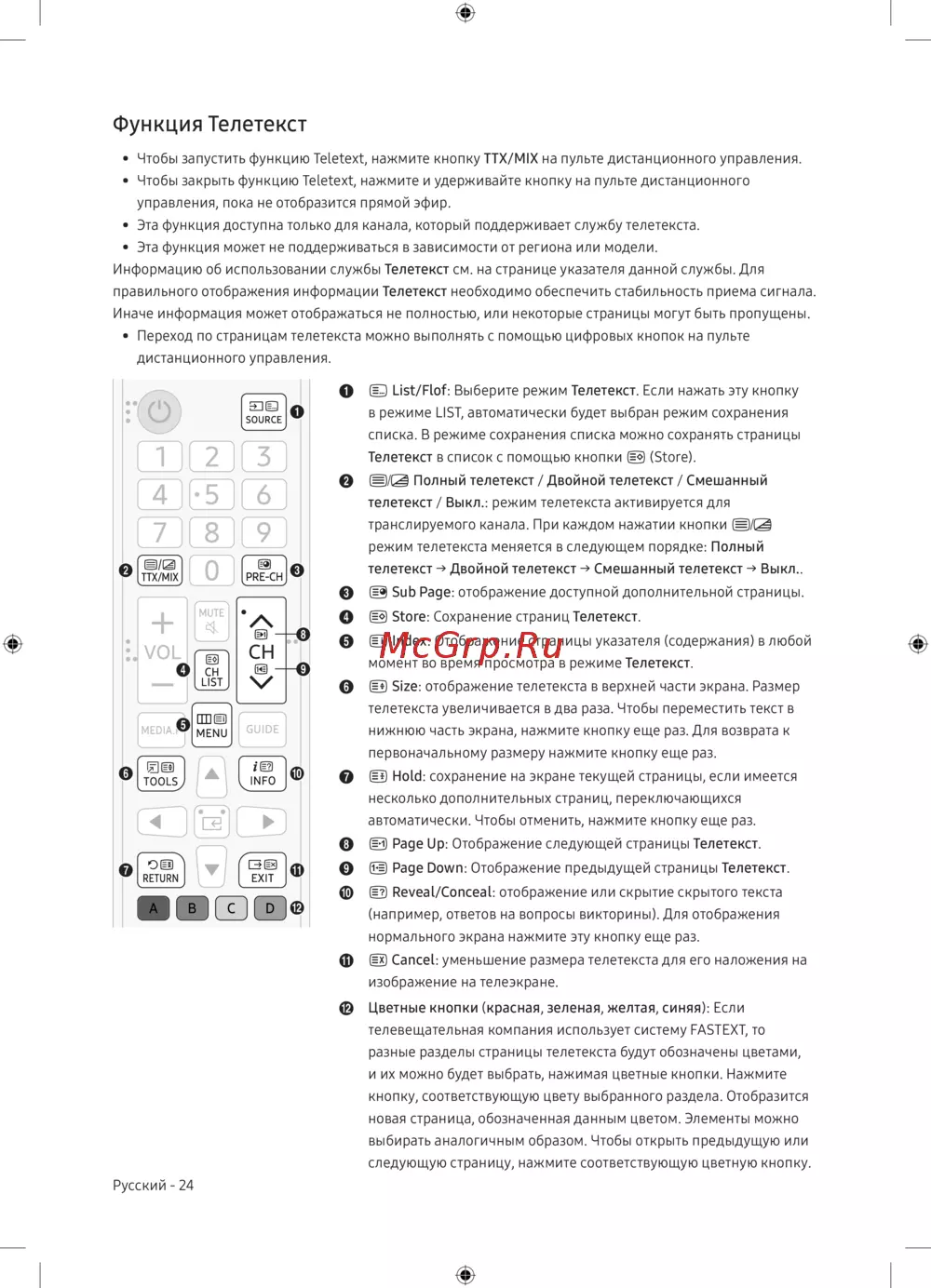 • Чтобы запустить функцию Teletext, нажмите кнопку TTX/MIX на пульте дистанционного управления.