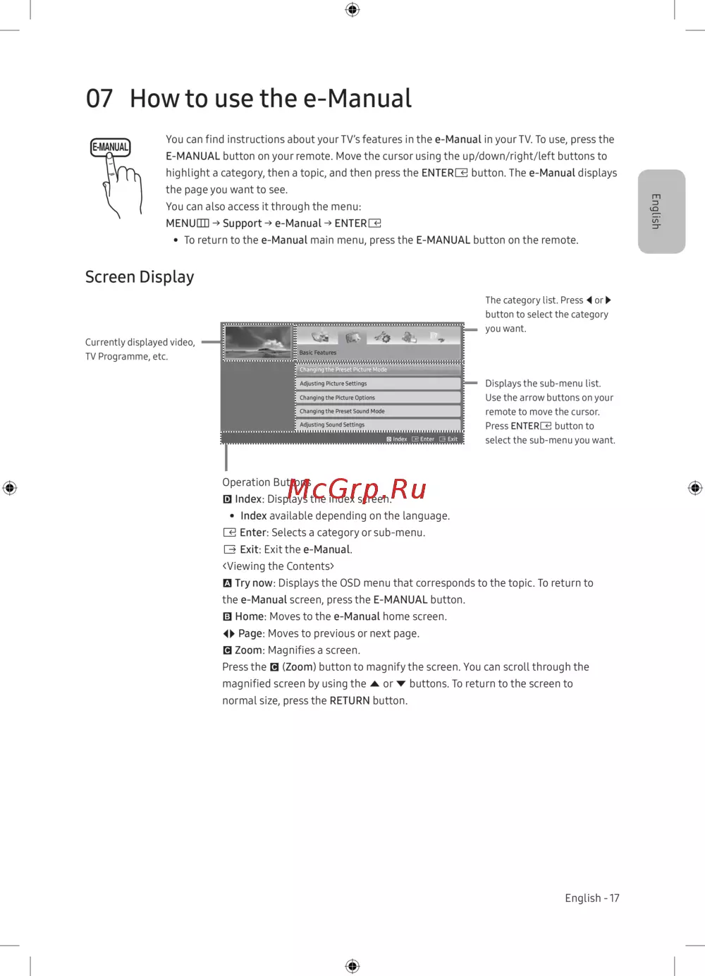 E-MANUAL button on your remote. Move the cursor using the up/down/right/left buttons to
