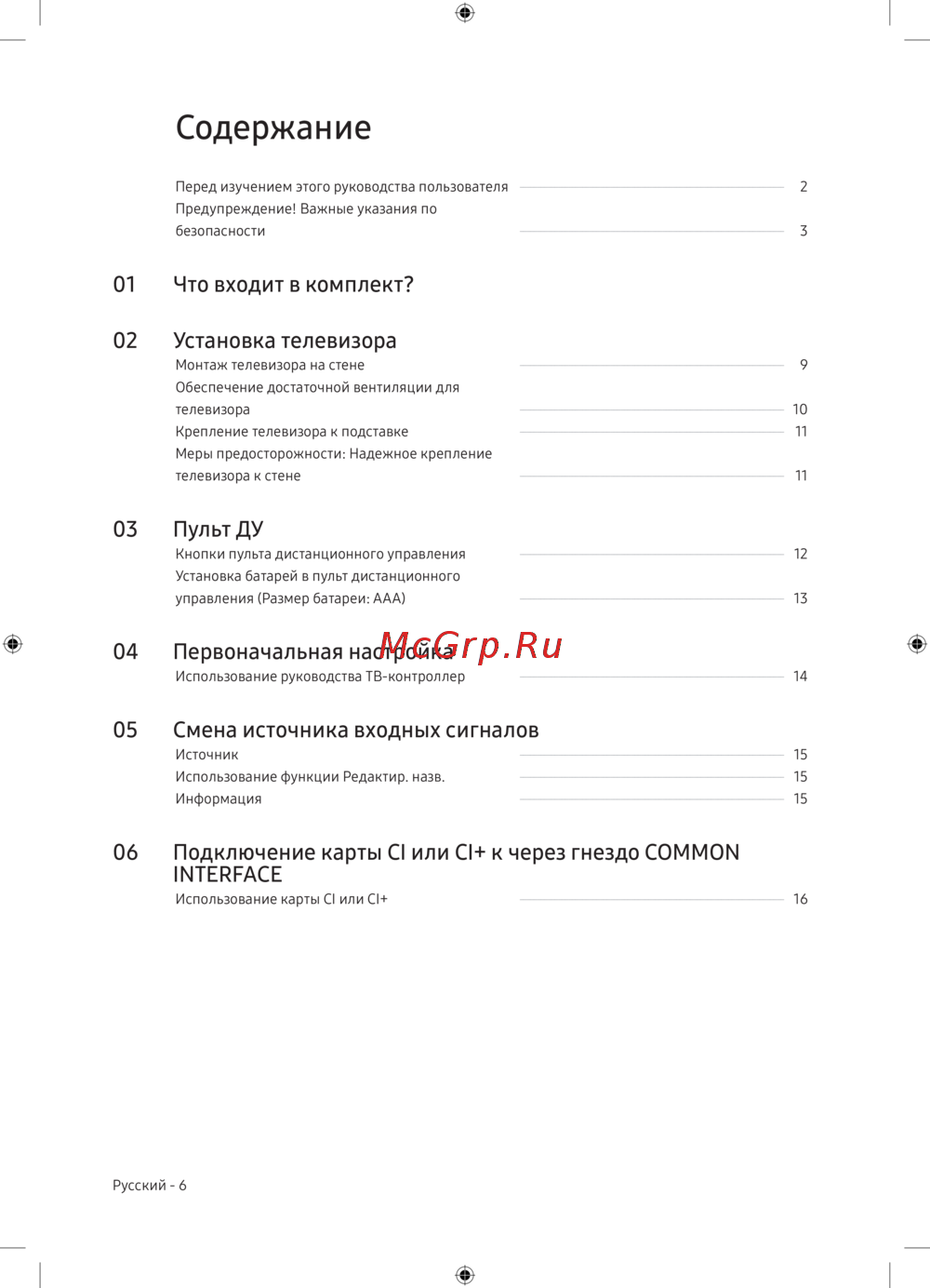 - Установка телевизора p.6