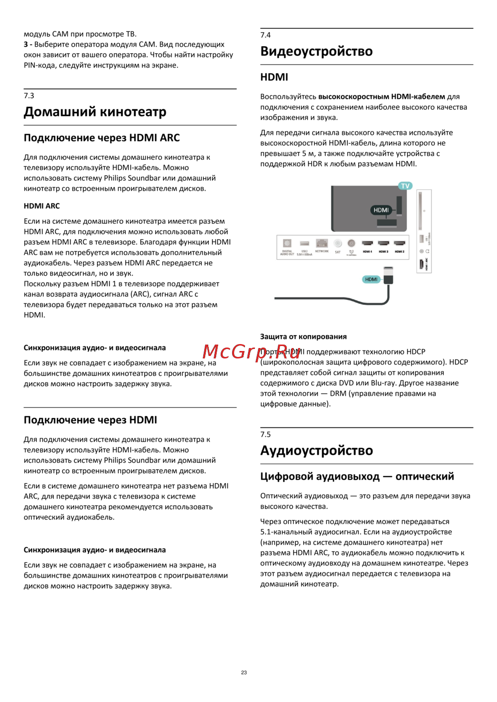 разъема HDMI ARC, то аудиокабель можно подключить к