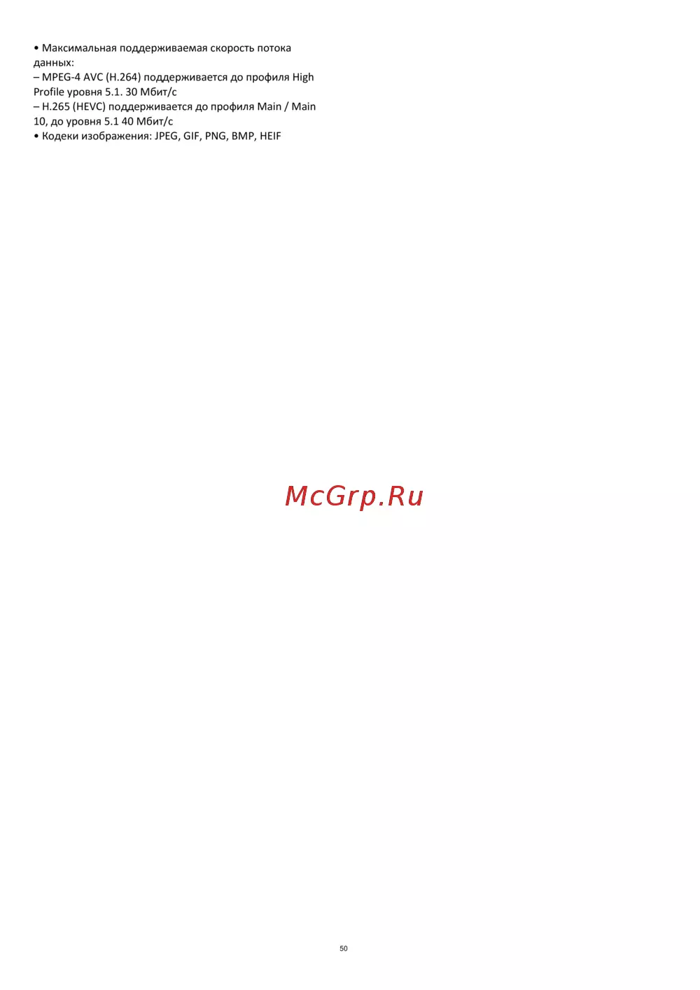 – MPEG-4 AVC (H.264) поддерживается до профиля High