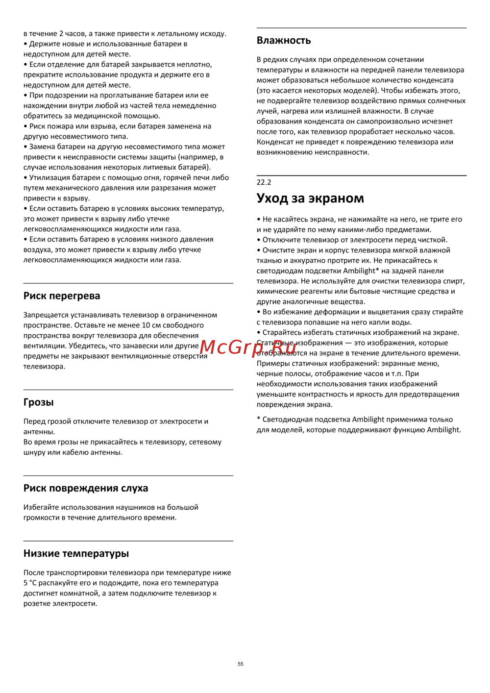 - Уход за экраном p.55