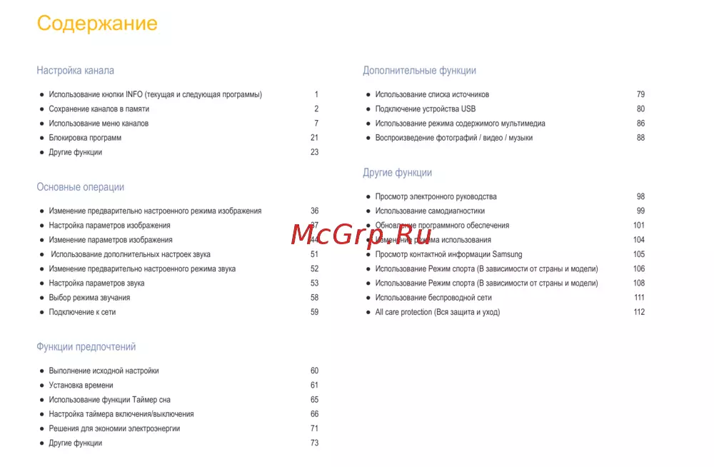 - Использование меню каналов p.8