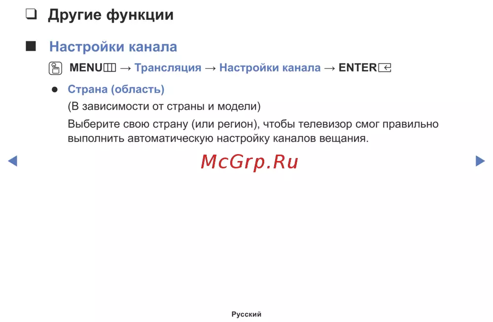 Выберите свою страну (или регион), чтобы телевизор смог правильно