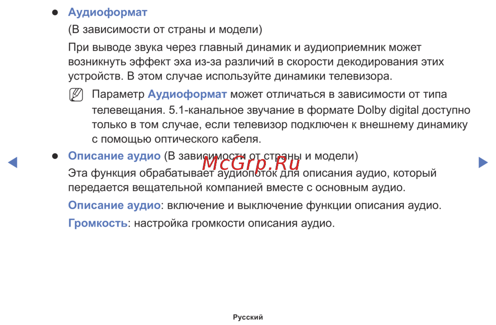 телевещания. 5.1-канальное звучание в формате Dolby digital доступно
