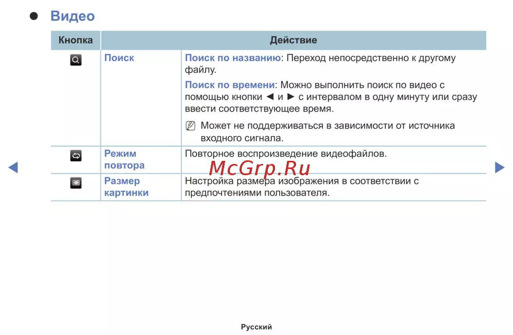 Повторное воспроизведение видеофайлов.