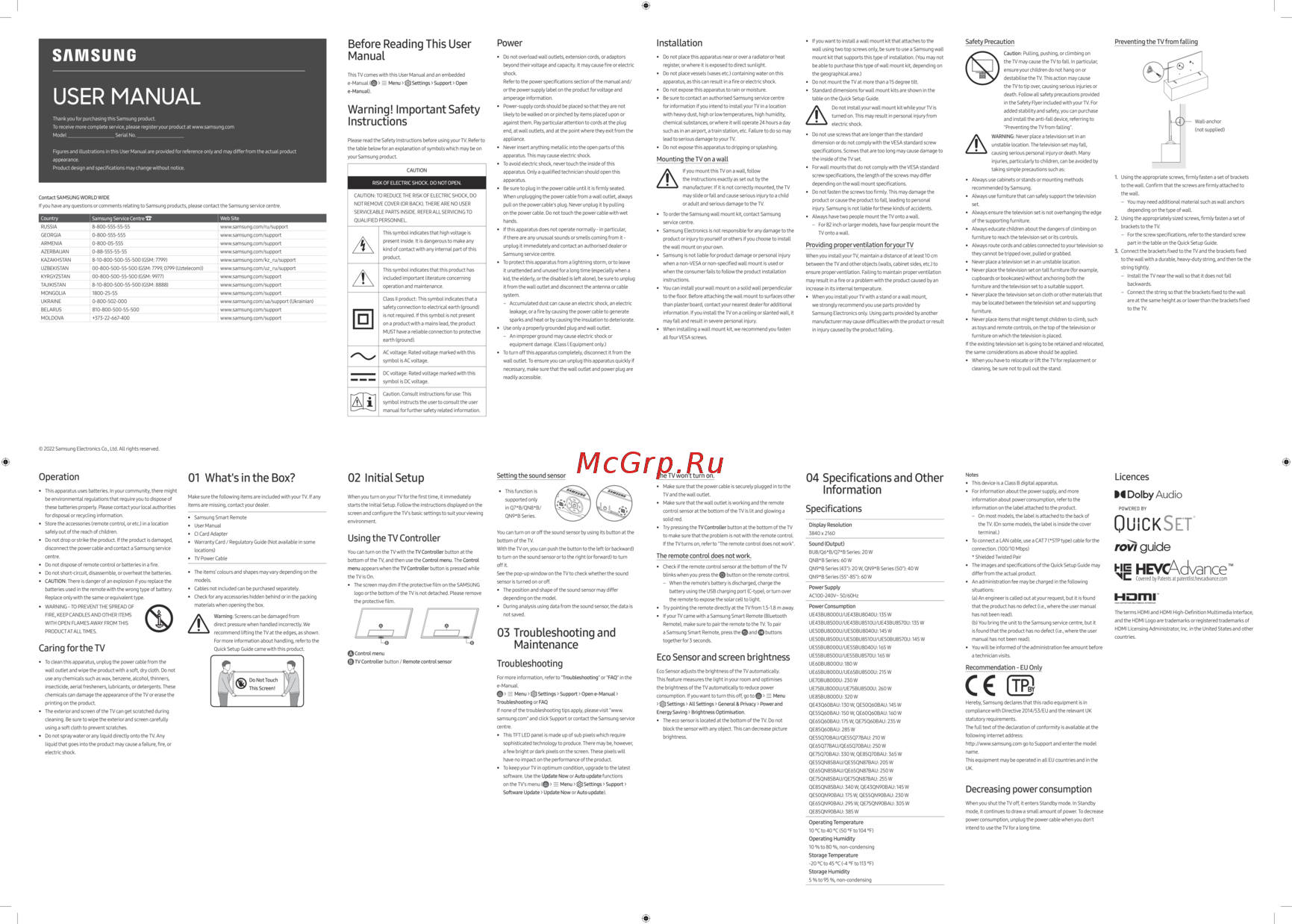 Samsung QLED 4K Smart TV QE55Q80BAUРуководство по эксплуатации -