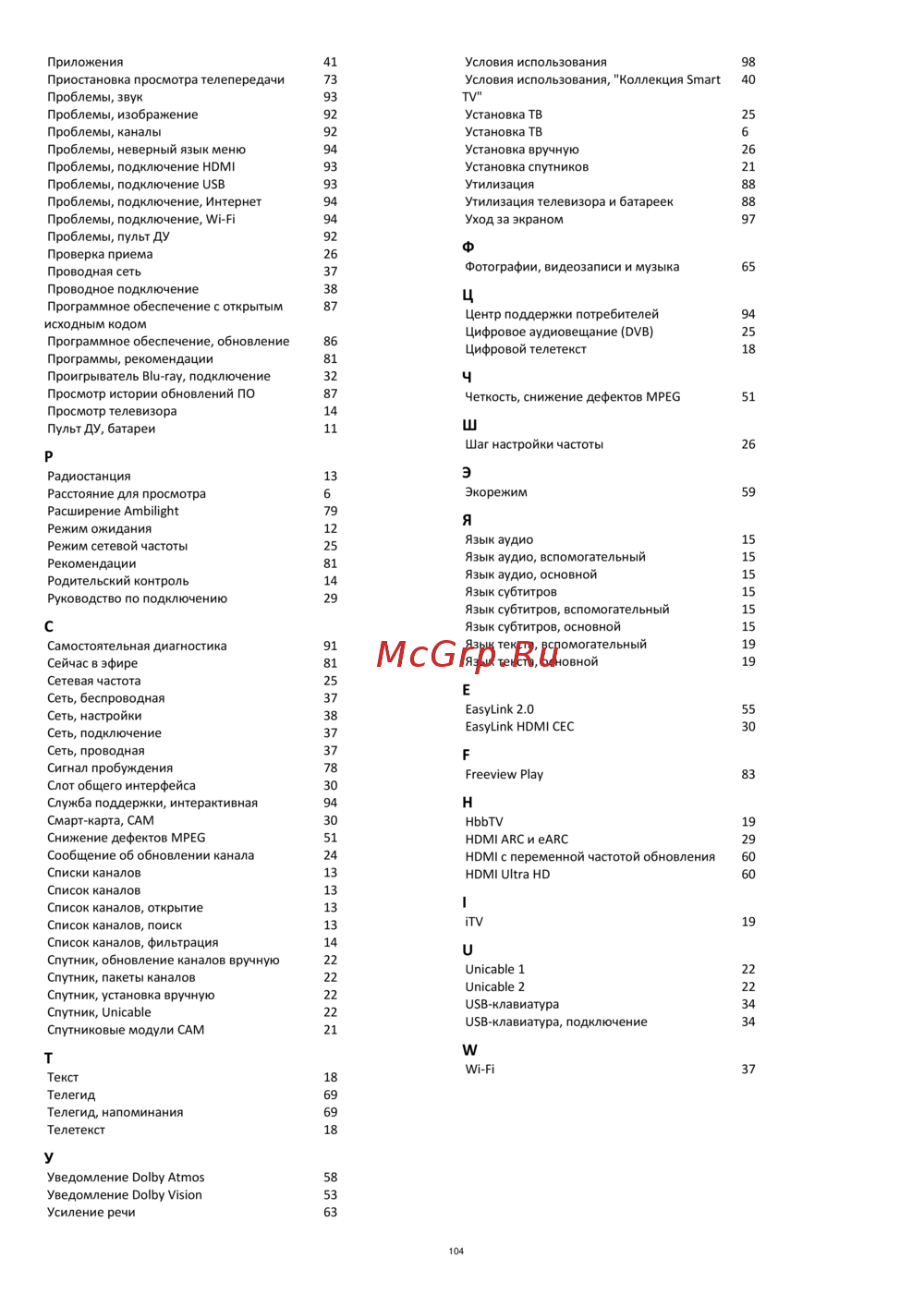 - Условия использования телевизор p.98