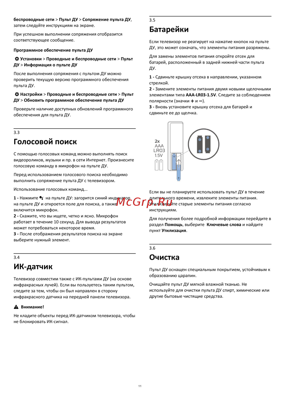 элементами типа AAA-LR03-1.5V. Следите за соблюдением
