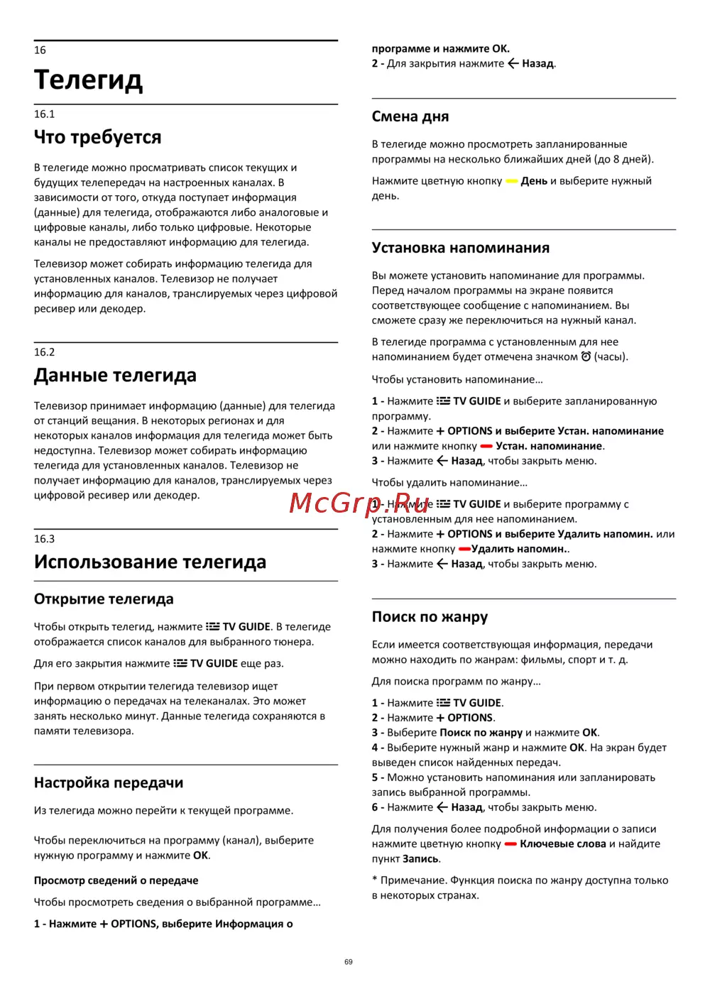 Чтобы открыть телегид, нажмите TV GUIDE. В телегиде